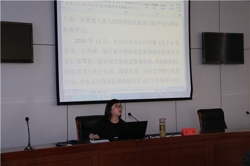 陈瑛教授从我国监察委员会的由来、《监察法》的制定、监察委员会的性质与定位、监察的全覆盖、权威高效的监察措施、监察委员会的监督制约机制等六个方面,对《监察法》进行了详细的解读。陈教授对照古今中外监察制度有关情况,对比《监察法》几次修订的不同之处,阐释了《监察法》制定的历史意义,以及监察委员会的历史使命;紧扣《监察法》条文,联系纪法衔接程序规范,对比《刑法》《刑诉法》有关规定,对查办案件工作的规范、程序和法律适用等进行详细讲解,为广大纪检监察干部上了一堂精彩的思路拓展和业务培训课。