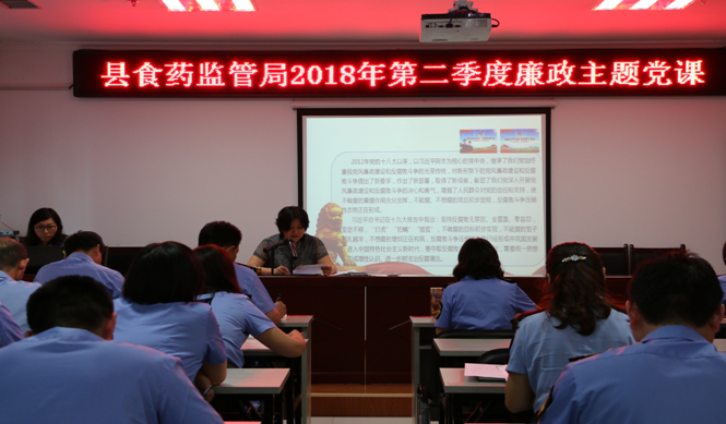 为进一步落实党风廉政建设“三个责任清单”,强化廉政教育和机关作风建设,6月22日下午,县食药监局党组主要负责同志以“廉政勤政 警钟常鸣 时刻筑牢反腐倡廉防线”为主题,为全体党员、干部职工上廉政党课。